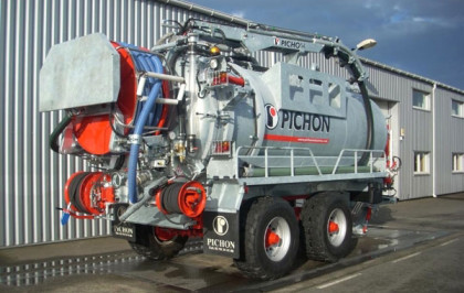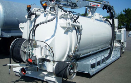 Wyposażenie całkowicie niezależne, zamontowane na podwoziu i wyposażone w grupę pompowania z pompą próżniową i pompą wysokiego ciśnienia napedzana termicznym silnikiem disel Caterpillar.