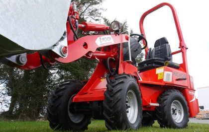 Ładowarka kompaktowa o szerokości 88cm, pozwala na przejazd przez wąskie drzwi i prace w pomieszczeniach zamkniętych.