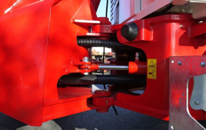 Osie ciężarowe boggie 130x130mm z hamulcami hydraulicznymi 400 x 80 mm to standardowe funkcje w modelu rozrzutnika M12B i M14B. Modele te posiadają również 2 pionowe wałki o średnicy 1035 mm z 46 przekładanymi ostrzami i całkowicie ocynkowaną strukturę.
