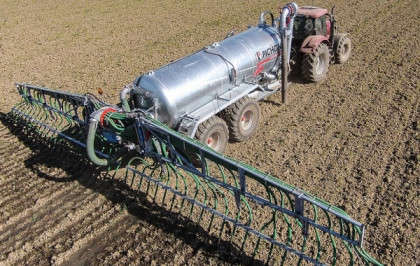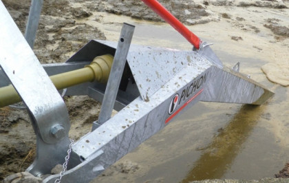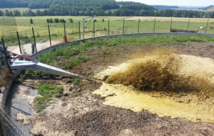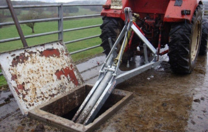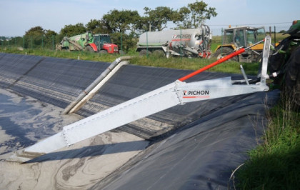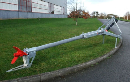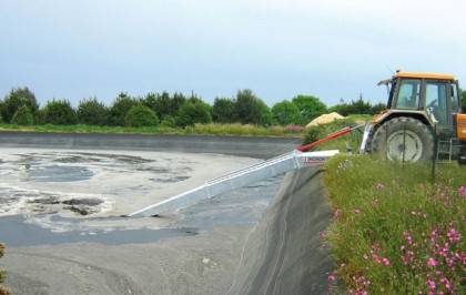 Mieszadło do gnojowicy B410 o długości 10,5 metra pozwala na mieszanie głębokich szamb, takich jak laguny lub zbiorniki geomembrany, o głębokości do 4,50 metrów.