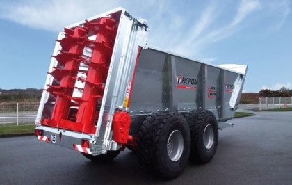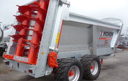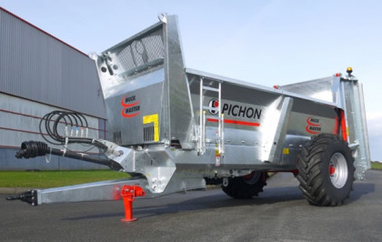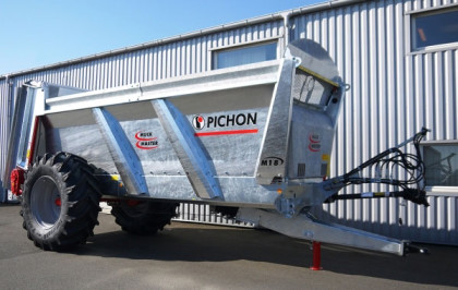 M8 i M10 oferują pojemność całkowitą pomiędzy 8 a 11 m³. Te 2 model są w pełni ocynkowane, jak cała gama rozrzutników obornika Marki Pichon i są wyposażone w osie ciężarowe 90 x 90mm z hamulcami hydraulicznymi 400 x 80 mm.